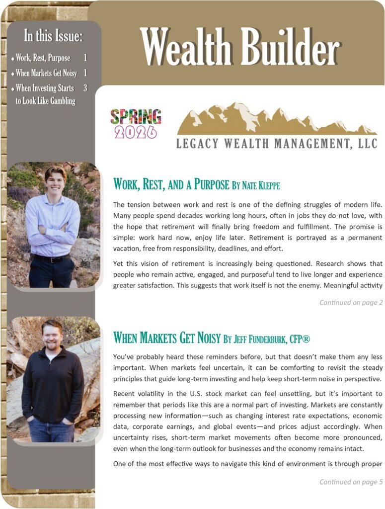 View Larger Image Spring Newsletter 2026 Every quarter, we send out a newsletter to share thoughts and feelings on various topics around the financial industry. (click image below to read) By Jennifer Taylor|2026-04-09T12:59:25-06:00April 9th, 2026|Categories: Newsletters|Tags: 2026, April|0 Comments Share This Story, Choose Your Platform! FacebookXRedditLinkedInTumblrPinterestVk About the Author: Jennifer Taylor